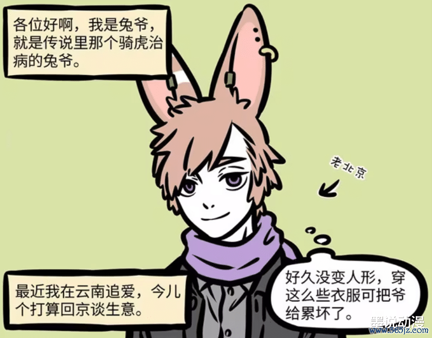 在《有兽焉》中,兔爷跟四雇主的情谊相比好。在《非东谈主哉》漫画版中,兔爷则是酿成帅哥样子,不外跟小玉雷同保留着兔耳朵。这个兔爷很出名,也即是听说中骑虎治病的那只兔子。兔爷这一次之是以会回到北京,是因为有营业要作念。但因为好久莫得变回东谈主形,是以穿一稔也把我方累得够呛。