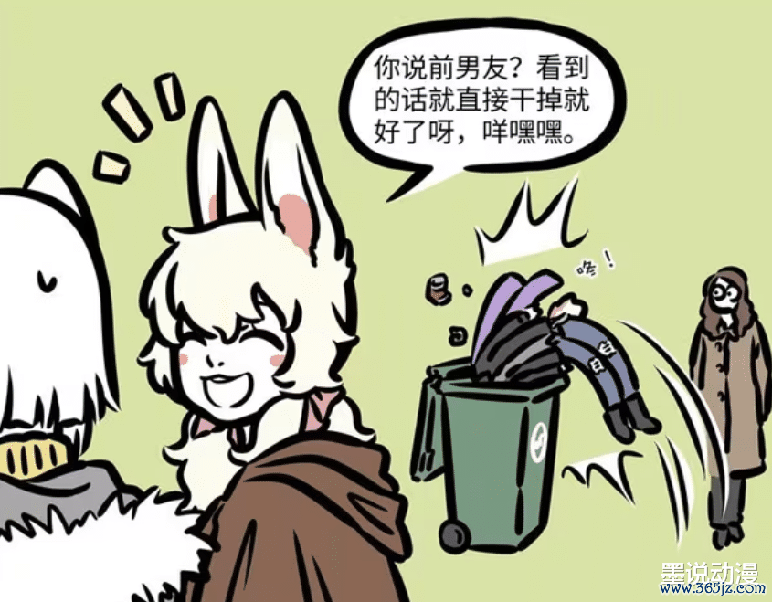 《非东谈主哉》漫画版偶尔会跟《有兽焉》联动,兔爷即是《有兽焉》中的主要变装之一,在《非东谈主哉》漫画版中,兔爷酿成东谈主形,样子很帅气。兔爷在路上碰见小玉,小玉却念念着要干掉前男友,兔爷发怵我方被干掉,只可躲进垃圾桶。后续兔爷饱读起勇气,念念要跟小玉搭话,不外在搭话之前,兔爷还准备了胡萝卜月饼。还好小玉没认出兔爷,否则这一次兔爷就回不到《有兽焉》的全国中。