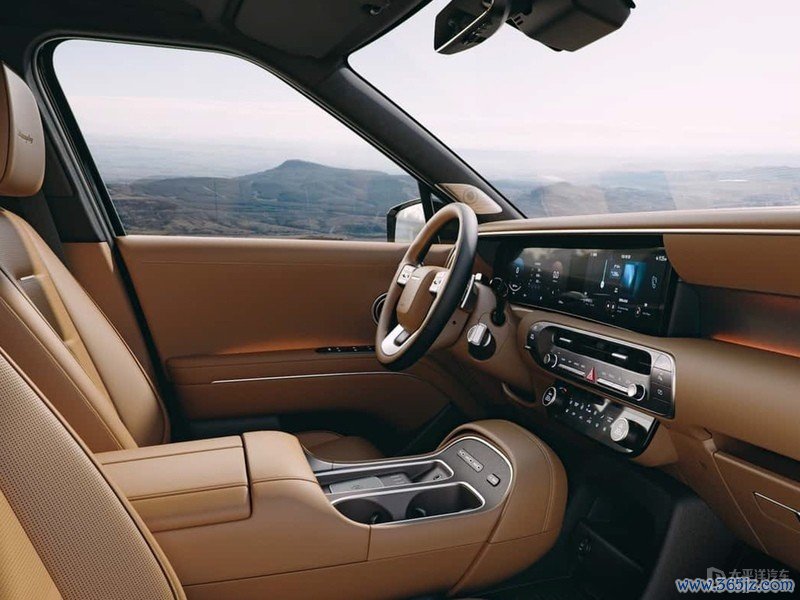 内饰合座选拔暖颜色,浅棕色真皮内饰搭配上环绕式的曲面中控大屏和宏大的前挡风玻璃,仿佛踏进于一艘豪华游艇的驾驶舱内。新车配备了12.3英寸的液晶中控屏和全液晶边幅屏、100W的USB充电口、无线充电、底部收纳空间、双开门中央扶手等建树。