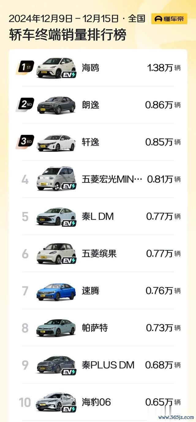 导读:如今的车市竞争可谓锐利,销量名次榜也捏续在洗牌,最新一周轿车销量已出炉!海鸥地位依旧坚挺,轩逸总结前三,速腾已无缘前五,小米SU7未能熬进榜单前十,神车卡罗拉推崇欠安,排在30名开外。2024年12月第三周(12.9/12.15)轿车销量名次榜已崇拜揭晓!依据“懂车帝”数据线路,本周共有4款车型销量超0.80万辆,海鸥蝉联销量冠军,朗逸,轩逸荣获第二九游体育娱乐网,第三名,五菱宏光MINIEV,秦LDM,五菱缤果王人进前五,速腾,帕萨特,秦PLUS DM,海豹均入围榜单前十。