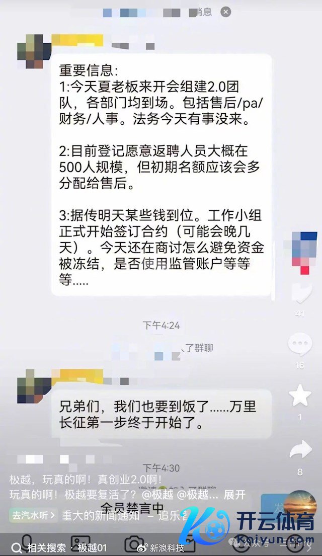 快科技1月3日音信,据三言科技爆料,近日,网传一张聊天记载夸耀,极越汽车“创业2.0”要来了。