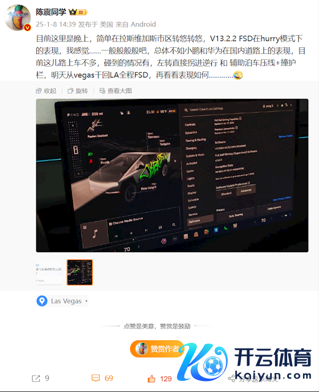 快科技1月8日讯息,汽车博主陈震自满称,在参预2025 CES时分,他在好意思国拉斯维加斯市区体验了特斯拉Cybertruck的FSD自动驾驶功能。